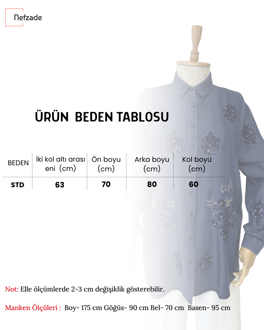 • Standart beden – 36/44 arası uyumludur